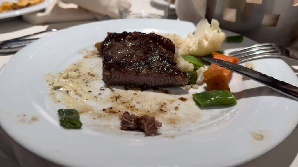 Italian night for example was all of the same options in the buffet but they added Chicken Parmigiana to the main course and Shrimp Cocktail to the appetizers. Better than nothing? Absolutely. Did it taste the best? Not really. If you are a picky eater – be ready to spend money at the specialty dining options or power through your trip with the 2 free options you have. And yes… they over cook the steak. Every time….